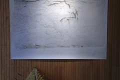 I wanted to experience what type of drawing that is created when you’re not allowed to use your hands to draw with. A piece of foam rubber, charcoal crayons and graphite pencils became the skin of a porcupine when attached to my body. As my body moved traces were created and accumulated on the paper.